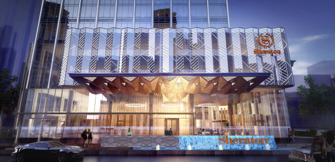 福州福清金輝酒店與國際知名連鎖酒店品牌 喜來登酒店以委托管理模式合作,酒店位于融 僑經(jīng)濟(jì)技術(shù)開發(fā)區(qū)中心位置,毗鄰福清萬達(dá)廣 場,同時(shí)臨近省級(jí)熱門景點(diǎn)——石竹山風(fēng)景名 勝區(qū)和靈石山國家森林公園,景區(qū)有眾多自然 景觀,草木郁郁蔥蔥,景色優(yōu)美。酒店距離福 州海港僅一小時(shí)車程。 酒店將于2020年6月1日正式開業(yè)。